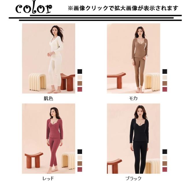 インナー レディース インナーセット 保温 発熱インナー 上下セット あったか 長袖 発熱 裏起毛 無地 肌着 ロングパンツ 暖かい 防寒インナー