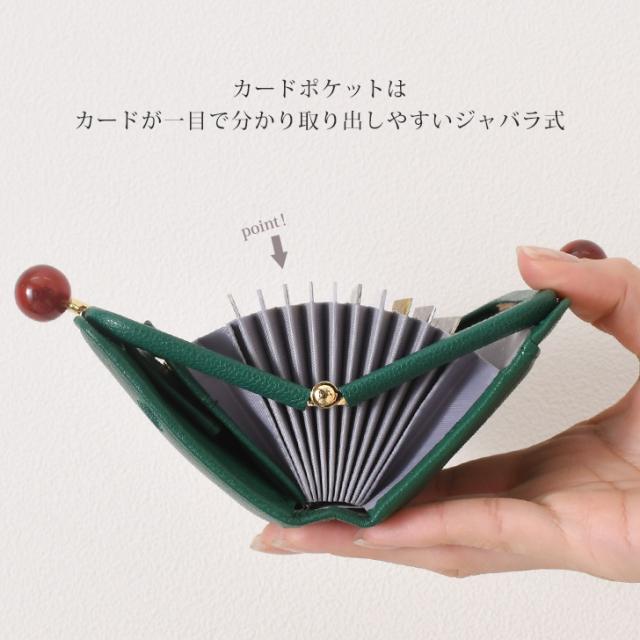 新作 perche ペルケ アクリル玉 ドット柄 がま口 ジャバラカードウォレット レディース 財布 本革 ブランド かわいい おしゃれ 口金 山羊革 レザー ウォレット ミニ財布 小銭入れ カード入れ カードケース