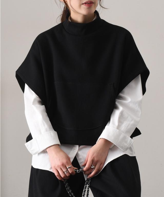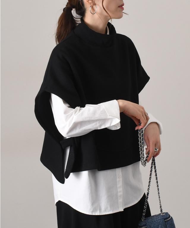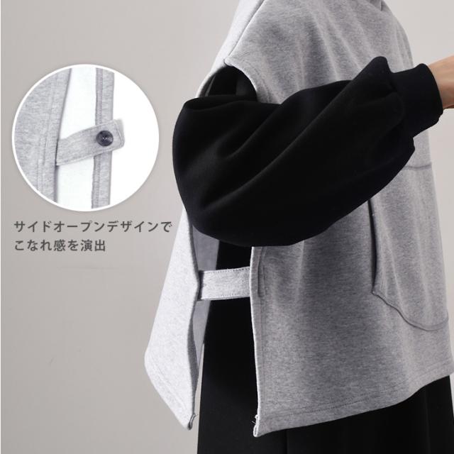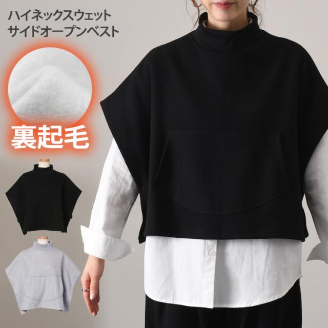 新作 ハイネック裏起毛スウェットサイドオープンベスト レディース トップス おしゃれ スウェット スエット ベスト スウェットベスト スエットベスト 秋冬 ハイネック モックネック ボトルネック 首隠し 首カバー