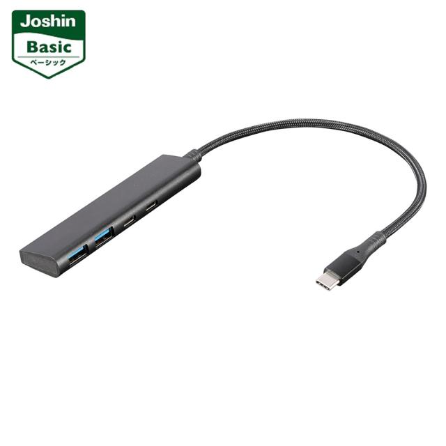 ナカバヤシ UH-C3CA01BKJ USB3.2Gen1Type-C4ポート (Cx2/Ax2)アルミハブ(ブラック)【Joshinオリジナルモデル】[UHC3CA01BKJ] 返品種別A