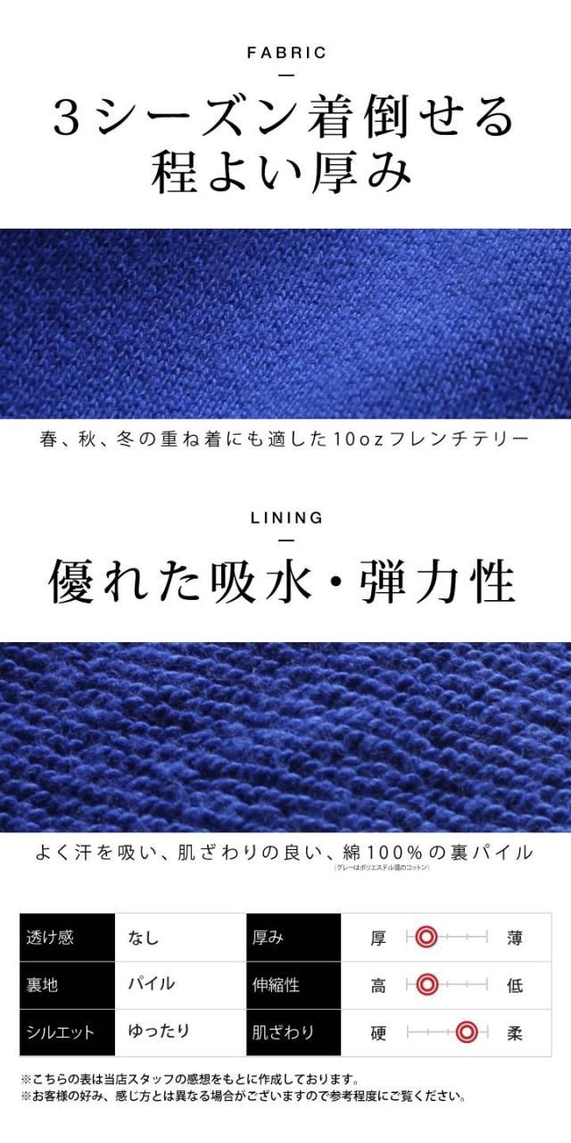 毎日着たくなる心地よさと高いデザイン性を兼備したアメリカンスウェットの王道ともいわれるヘビーブレンド生地。コットン100%なので、毛玉ができにくく、吸汗性に優れソフトな肌触りが実感できます。1枚でもシルエットがビシッとキマる程よい厚みも人気の理由です。