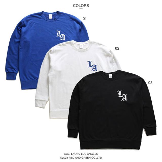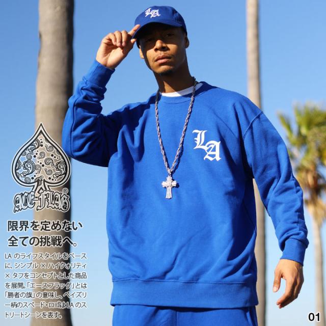 ACE FLAG トレーナー ブランド スケボー 長袖 スウェット 裏パイル メンズ 青/白/黒 大きいサイズ エースフラッグ トップス LA ロゴ ロサンゼルス ギャング b系 ヒップホップ ファッション ストリート系 ハイ 服 AF-TL-SW-035