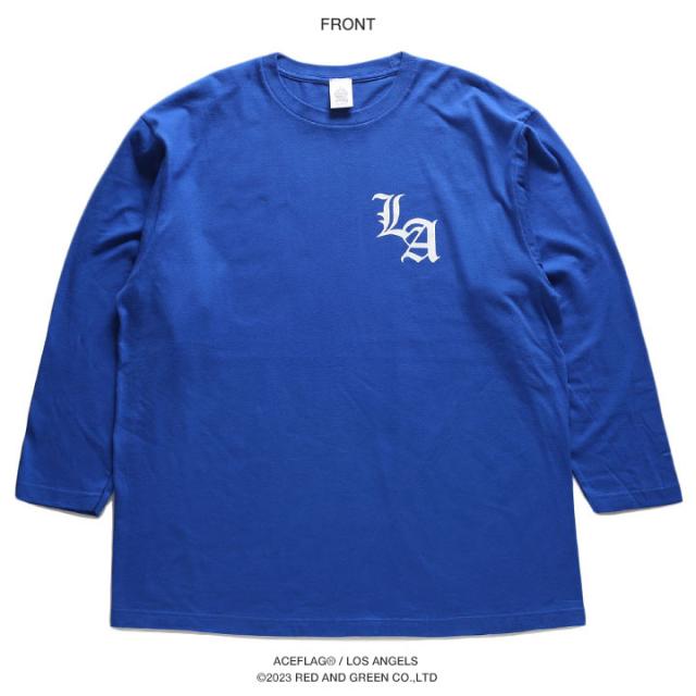 ACE FLAG ロンT メンズ 青/白/黒 大きいサイズ エースフラッグ Tシャツ 長袖 ビッグシルエット おしゃれ シンプル ワンポイント LA エルエー ロゴ ロサンゼルス b系 ヒップホップ ファッション ストリート系 ハイ ブランド 服 AF-TL-LT-034