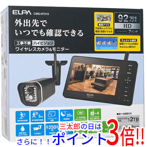 【1日と三太郎の日はポイント3倍!!】【新品】送料無料 ELPA ワイヤレス防犯カメラ&モニターセット CMS-H7210