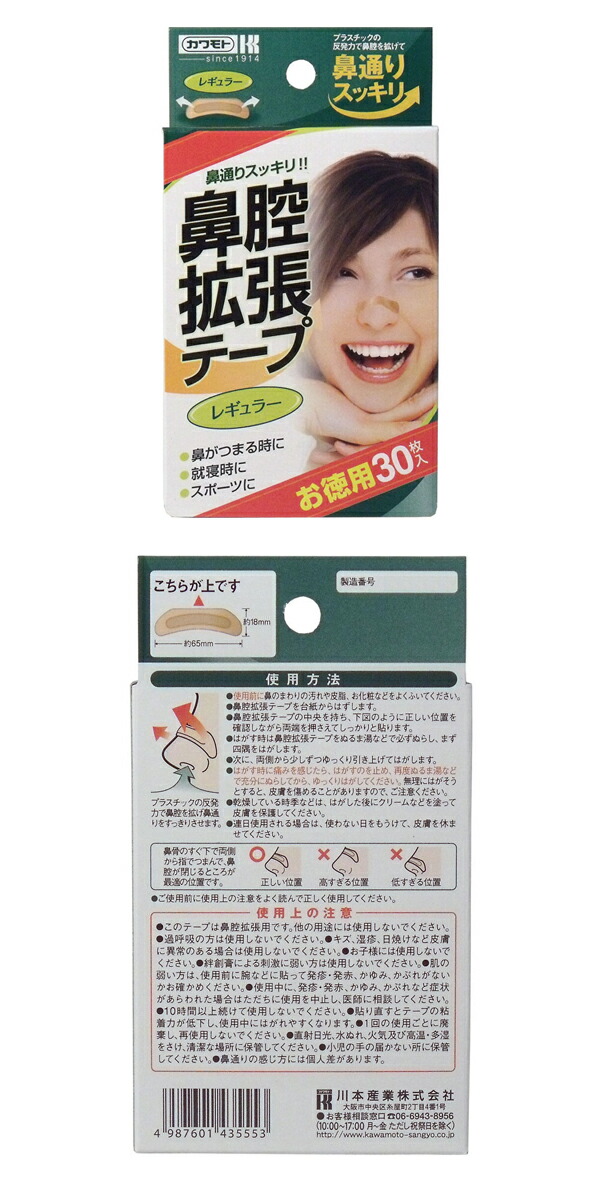 【メール便対応】川本産業 鼻腔拡張テープ レギュラー 30枚入 いびき防止 花粉症 鼻腔