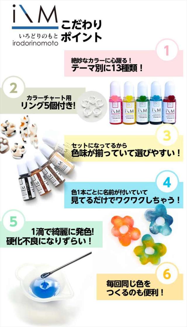 レジン 着色剤 5色 セット いろどりのもと レジン着色剤 レジン液 着色料 着色剤セット レジン着色剤セット 着色 くすみカラー 不透明 ミルキー パステル 高発色 UVレジン LEDレジン カラーチャート用リング付 さや工房 手作り アクセサリーパーツ パーツ おすすめ