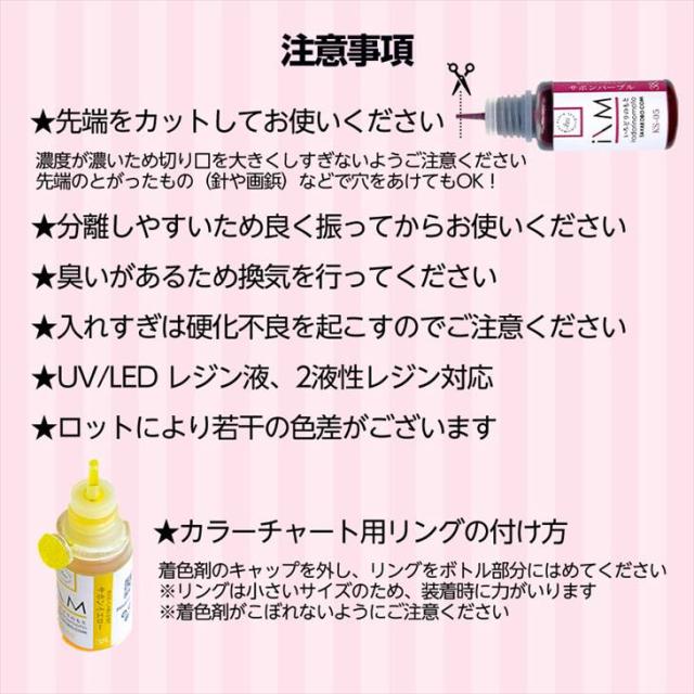 - 思っていたカラーで少しの量でも色付くので、色々、楽しめそうです。届いて開けた瞬間、ちょっとキツい匂いがしましたが…この着色剤じゃないみたいでした。あと…気になったのは、着色剤が入ってる透明ケースのすり...