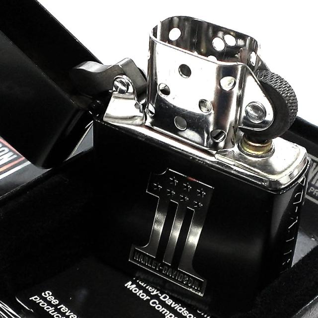 ZIPPOライター かっこいい ハーレー ダビッドソン ジッポ ブラック HARLEY-DAVIDSON エッチング彫刻 艶消し黒 銀差し 渋い