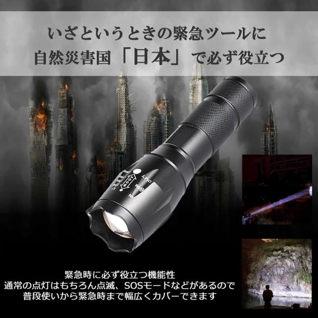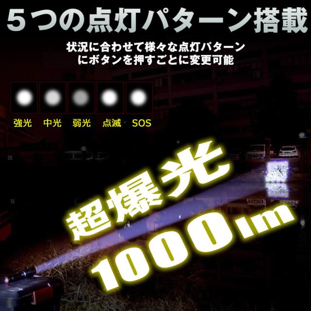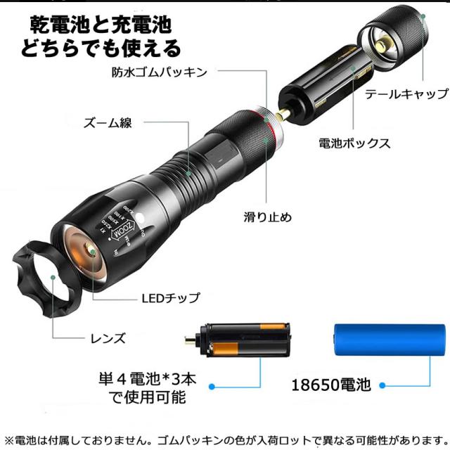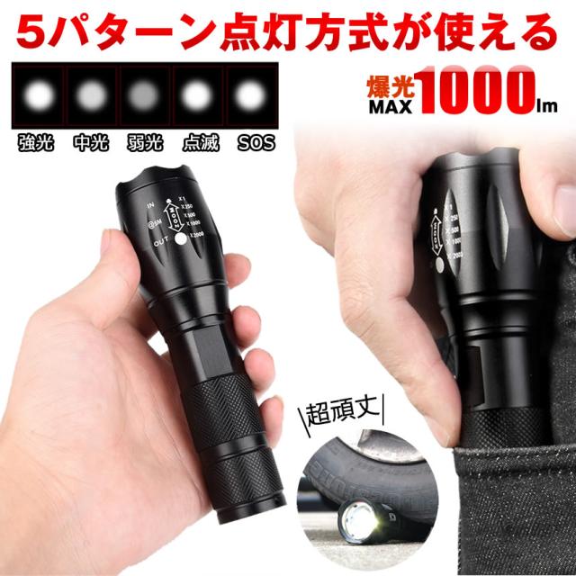 懐中電灯 ハンディライト led ライト 電池式 最強 ハンディ高輝度 ハンドライト フラッシュライト 作業 小型 軽量 ウォーキング キャンプ ジョギング 夜釣り 釣り 災害 防災 地震 かいちゅうでんとう 乾電池 充電池 18650 1000 ルーメン