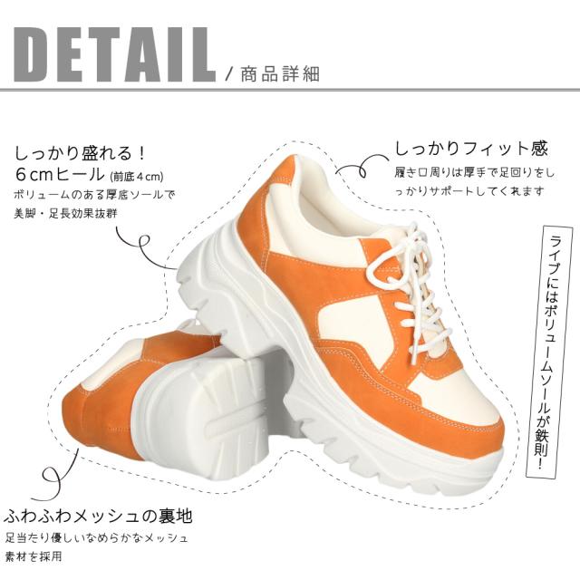 厚底 スニーカー レディース 推しカラー 推し活 Parade 6894 7095 ローカット 靴 おしゃれ カジュアル ライブ スタイルアップ かわいい パステルカラー カラフル 疲れにくい