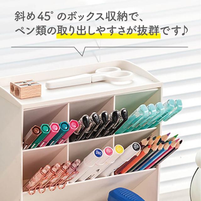 斜め45°のボックス収納で、ペン類の取り出しさすさが抜群です。