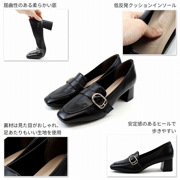 ・バックルベルトデザインでハンサムライクな大人ローファーパンプス!