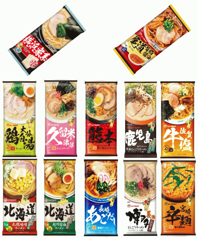 マルタイ食品、棒ラーメン。日本列島ご当地ラーメン味めぐり10袋(20人前)。食べ比べフェア