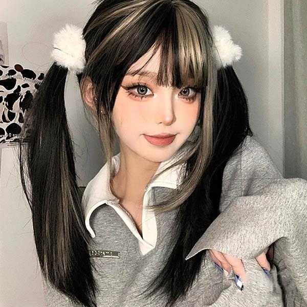 ウィッグ レディース フルウィッグ ロング メッシュ ストレート 黒髪 ぱっつん前髪 前髪あり 可愛い かわいい 大人用 コスプレ ロリータ ゴスロリ コスチューム 原宿風 仮装 超自然 かつら wig Lolita 小顔 文化祭 イベント 学園祭 ハロウィン dq116n1n1zr