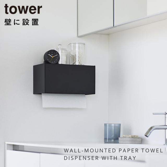 ペーパータオルホルダー 壁掛け ペーパータオル ホルダー タワー tower 山崎実業 石こうボード壁対応トレー付きペーパータオルディスペンサー タワー