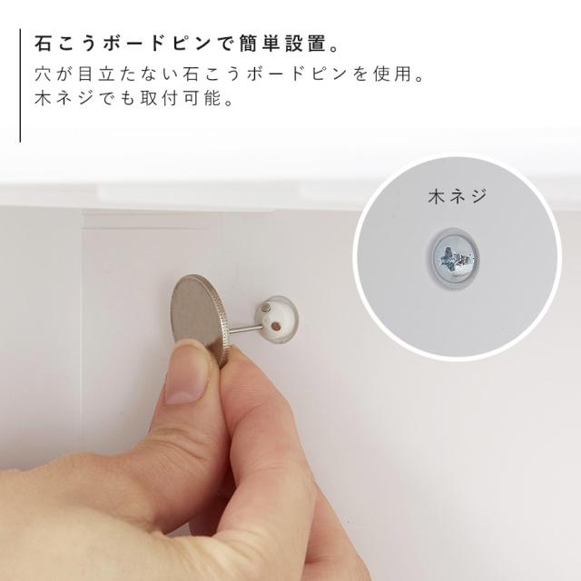 ■取り付け可能な壁面:石こうボードピン使用時/壁紙・布壁紙・ビニール壁紙貼りなどの石こうボード・薄ベニヤ、木ネジ使用時/柱・板壁(厚さ1cm以上)・プリント合板(裏側に水平にサンがある場所)・裏に下地材(間柱)が入っている壁