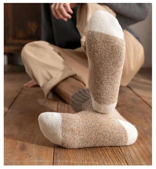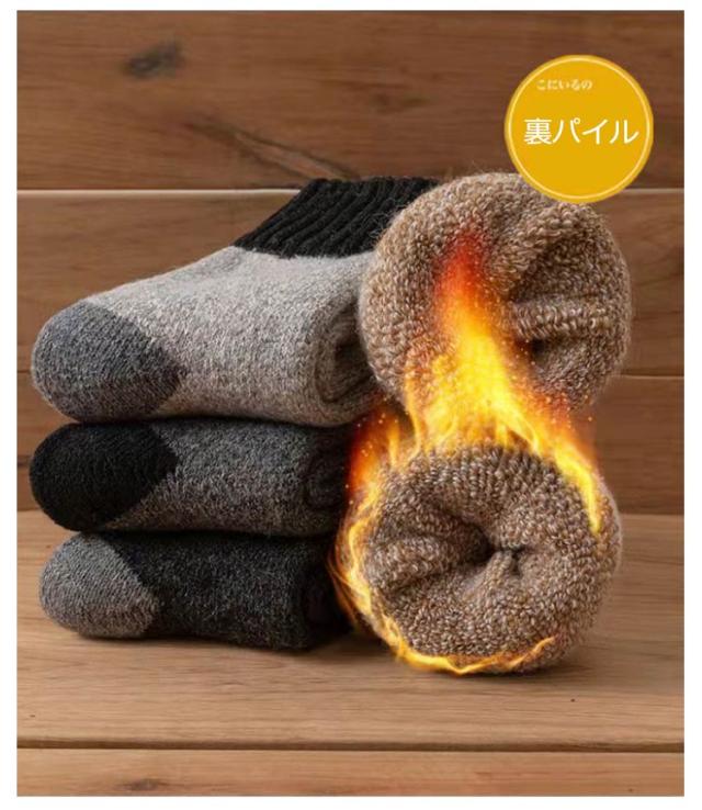 ウールソックス ぽかぽか ウール混 靴下 メンズ 防寒 裏パイル 厚手 冬用 靴下 シンプル あったかソックス くつした 足元 保温 冷えとり 発熱 暖かい ソックス くつ下 配色 あったか靴下 黒 紺 グレー ネイビー ベージュ