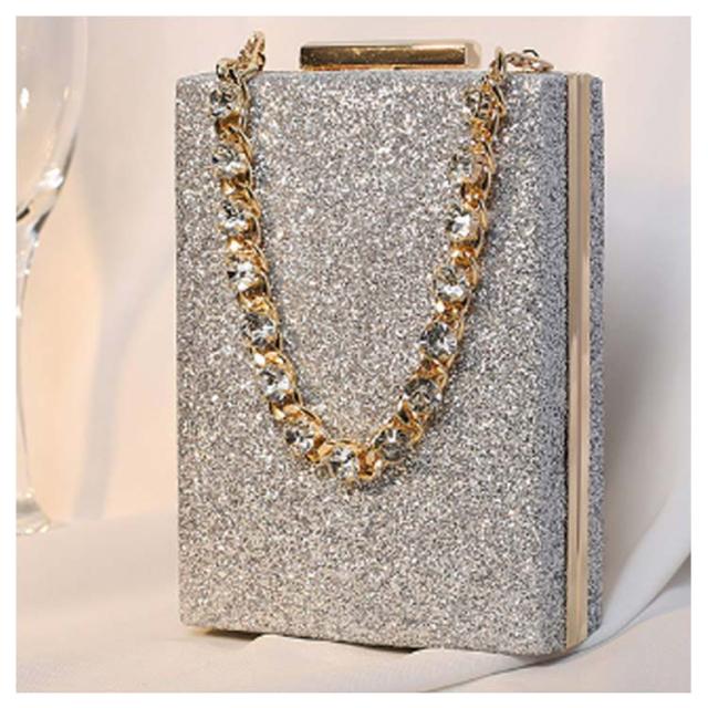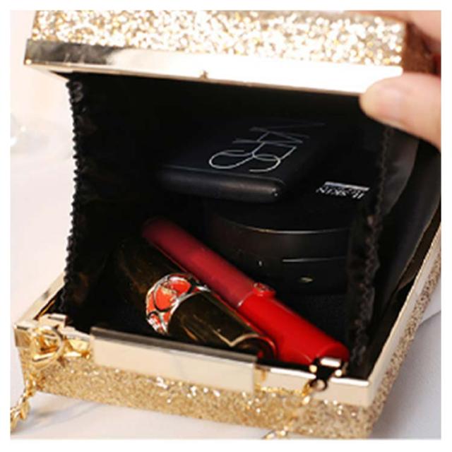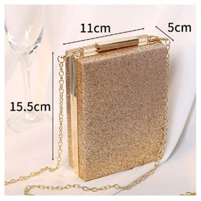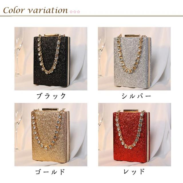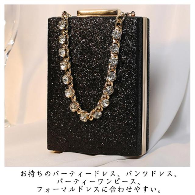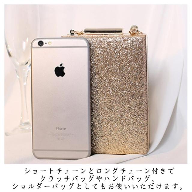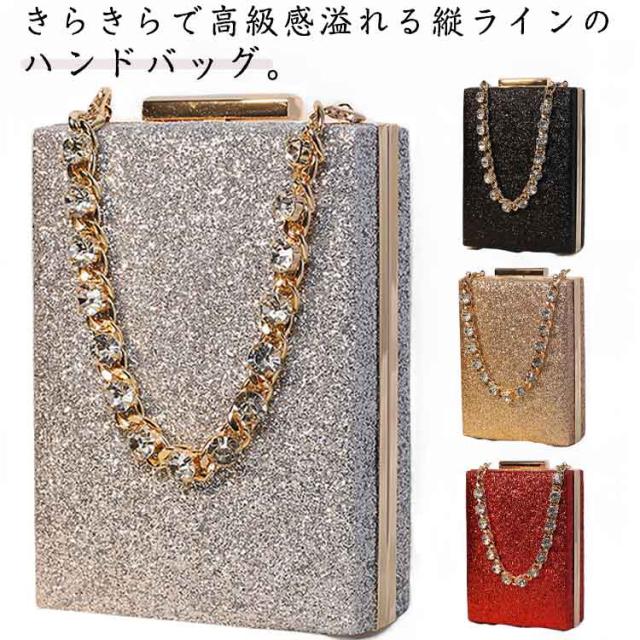 | きらきらで高級感溢れる縦ラインのハンドバッグ。 携帯や小物が入れる丁度いい手持ちしやすいサイズでかさ張り防止◎ ショートチェーンとロングチェーン付きでクラッチバッグやハンドバッグ、ショルダーバッグとしてもお使いいただけます。 お持ちのパーティードレス、パンツドレス、パーティーワンピース、フォーマルドレスに合わせやすい。 | |