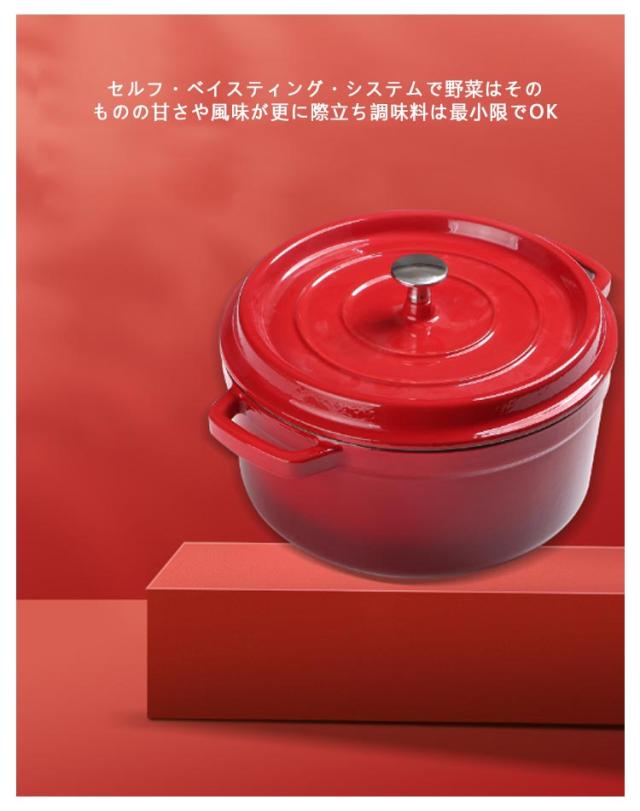 | IH対応 24cm 旨味を引き出すセルフ・ベイスティング・システム ガス、オーブン、IHクッキングヒーター、ハロゲンを含む幅広い熱源に対応 一度温まると冷めにくいので、長時間の煮込み料理に最適! セルフ・ベイスティング・システムで野菜はそのものの甘さや風味が更に際立ち調味料は最小限でOK | |