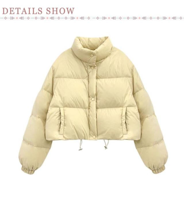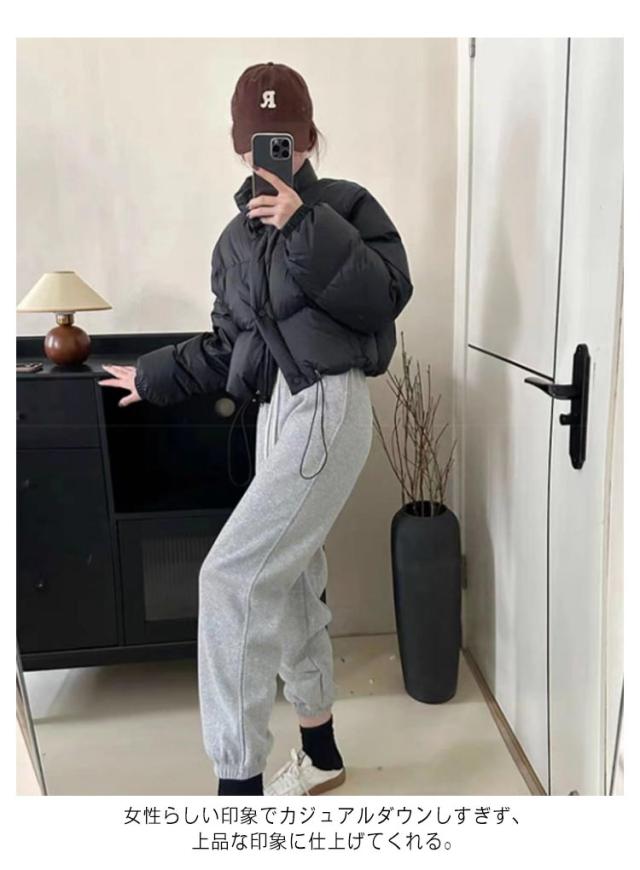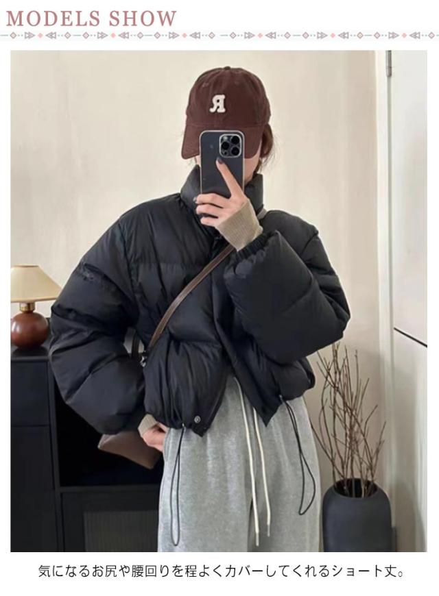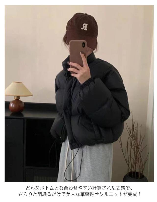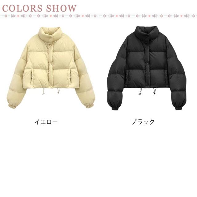 フェイクダウン ショート丈 フード無し スタンドカラー コート 無地 中綿ブルゾン 立ち襟 暖かい アウター フェイクダウン ボリューム レディース シンプル カジュアル 大人可愛い おしゃれ