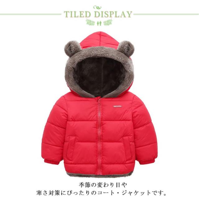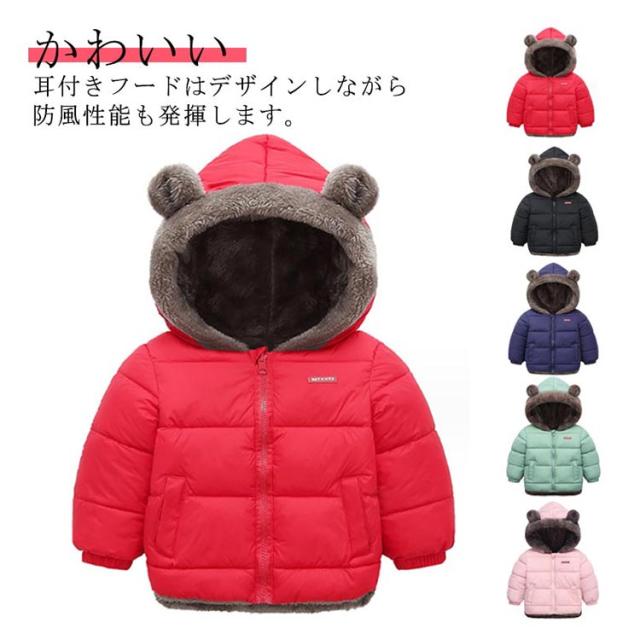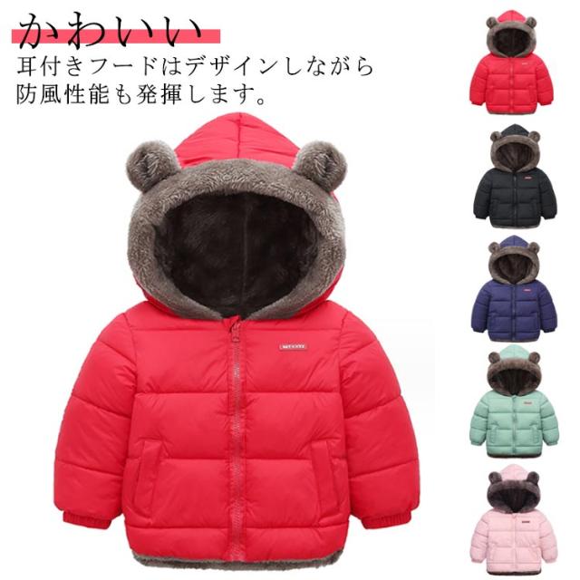ダウンジャケット 長袖 男の子 女の子 子ども服 アウター 子供服 フード付き 90 ダウン風コート クマ耳 ファー 子供服 中綿コート 防寒 キッズ 110 120 130 100 暖かい お出かけ 通園 おしゃれ 可愛い