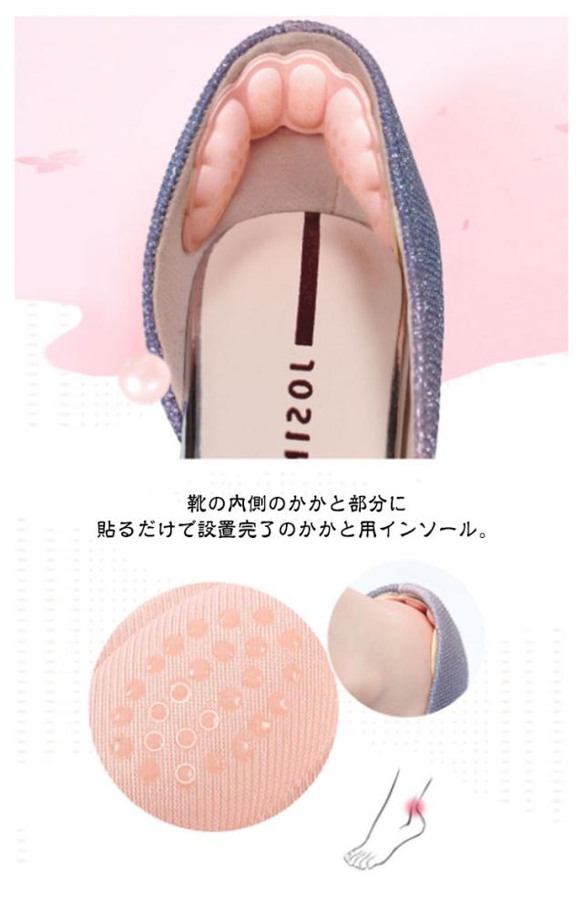 | 足の痛み、靴ずれ解消に最適なかかとパッドです。 クッション性に優れ、柔らかく、良い履き心地を追求しております。 靴ずれからかかとを保護するのはもちろん、ゆるい靴のパカパカ防止にも役立ちます。 靴の内側のかかと部分に貼るだけで設置完了のかかと用インソール。 | |