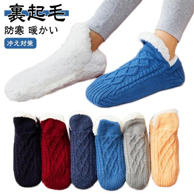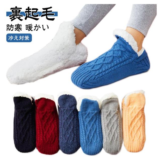 ケーブル編みルームソックス ニットソックス ニット靴下 裏ボア 靴下 秋 レディース ルームソックス 厚手 部屋着 メンズ 暖かい 冷え防止 冬 防寒 ルームソックス 足元 冷え対策 保温 くつした 室内履き ブルー ブラック ワインレッド ダークブルー グレー オフホワイト