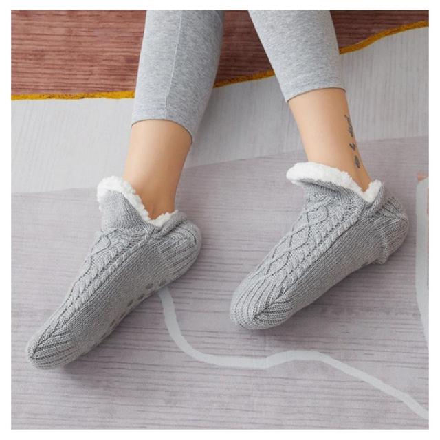 | ふわふわ、もこもこで秋冬にぴったりのシューズタイプのルームソックス。 ケーブル編みのニットと裏ボアの二重構造で保温性も高く、靴下の上に重ねて履いてより暖か。 おうちでのリラックスタイムにはもちろん、キャンプなどアウトドアのテントの中でもオススメです。 足底滑り止め付きでルームシューズ代わりにしたり、贈り物にもピッタリです。 | |