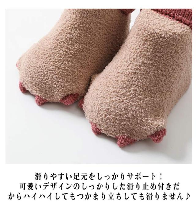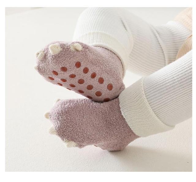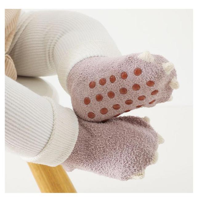 | シンプルなのに目を惹く、お洒落で可愛い恐竜の爪ソックス♪ 優しい肌触りのふわふわ生地を採用し、つま先かかとなどは立体縫製デザイン!履き心地も抜群! 伸縮性もよくくるぶし回りなどフィット感を高める仕様になっており、靴下が脱げにくくなっています。 滑りやすい足元をしっかりサポート!可愛いデザインのしっかりした滑り止め付きだからハイハイしてもつかまり立ちしても滑りません♪ キュートな足元を作り出し、SNS映えなどもしちゃう可愛いアイテムは、出産祝いやお誕生日などのプレゼントにおススメです! | |