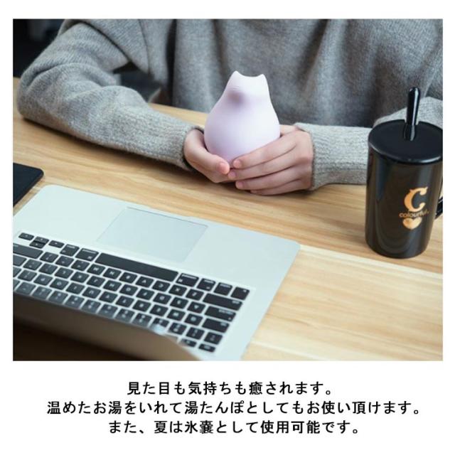 | マシュマロのような柔らかい肌触りのシリコン湯たんぽ。電子レンジで3〜4分加熱してすぐお使いいただけます。 水をいれて電子レンジですぐにポカポカ。わずらわしい、お湯を沸かしたり、電気で温める湯たんぽから卒業です! 可愛らしい、ぷにぷにの猫模様に手を添えるだけで、両手にフィットしてポカポカ。 見た目も気持ちも癒されます。 温めたお湯をいれて湯たんぽとしてもお使い頂けます。また、夏は氷嚢として使用可能です。 食品用品質のシリコンなので、丸ごと凍らせて、クーラーボックスにも入れられます。熱中症・暑さ対策や、怪我の処置などにもご使用頂けます。 | |
