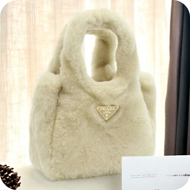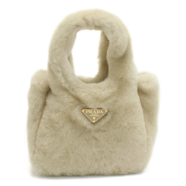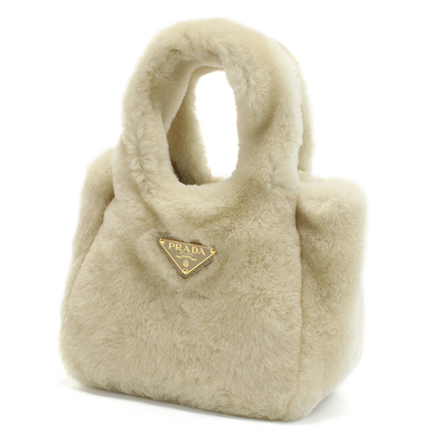 プラダ ハンドバッグ レディース ブランド バッグ MONTONE フェイクファー、レザー 1BA349 PRADA ECRU ベージュ系