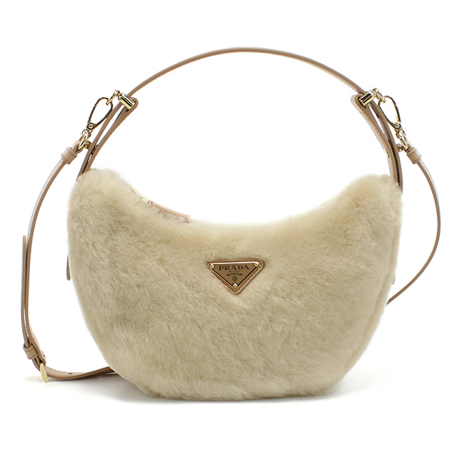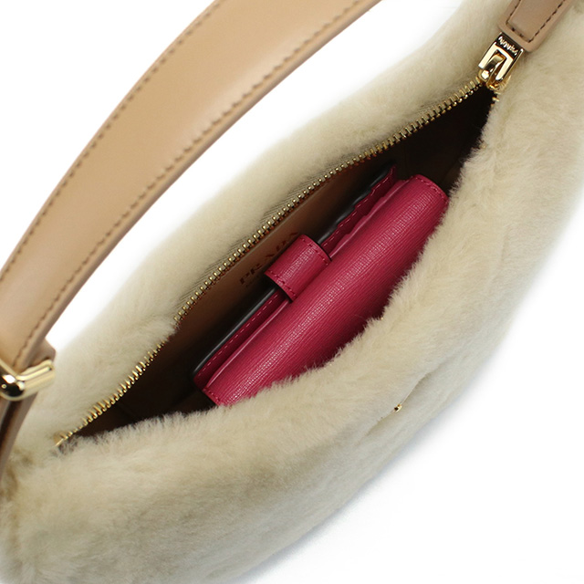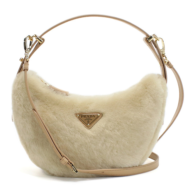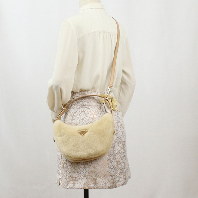 プラダ セミショルダー レディース ブランド バッグ MONTONE フェイクファー、レザー 1BC194 PRADA ECRU+NOISETTE ベージュ系
