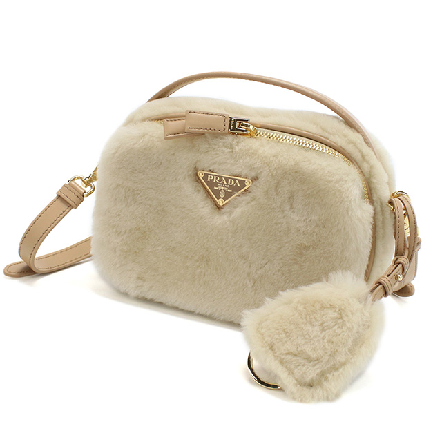プラダ 斜め掛けショルダーバッグ レディース ブランド バッグ MONTONE フェイクファー、レザー 1BH208 PRADA ECRU+NOISETTE ベージュ系