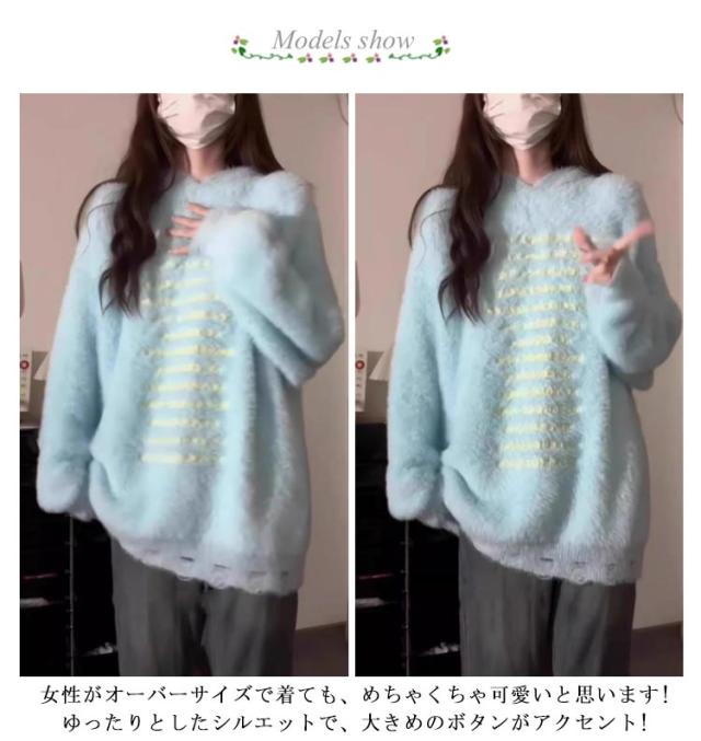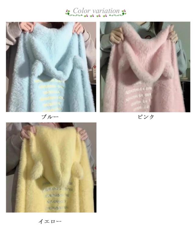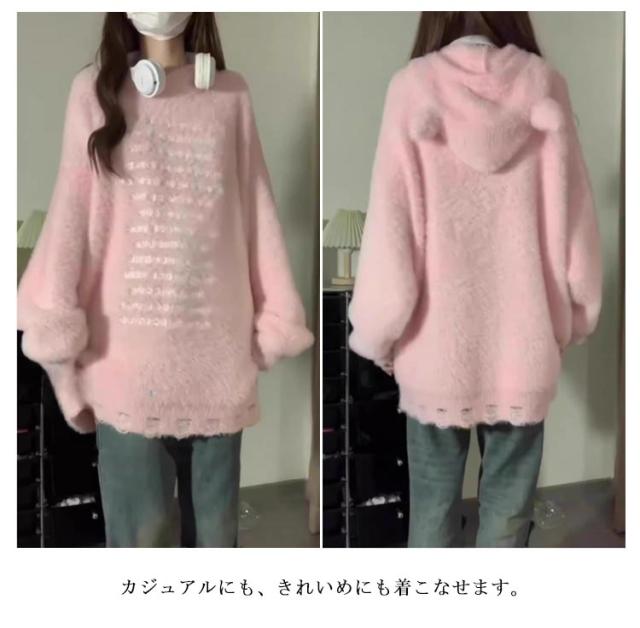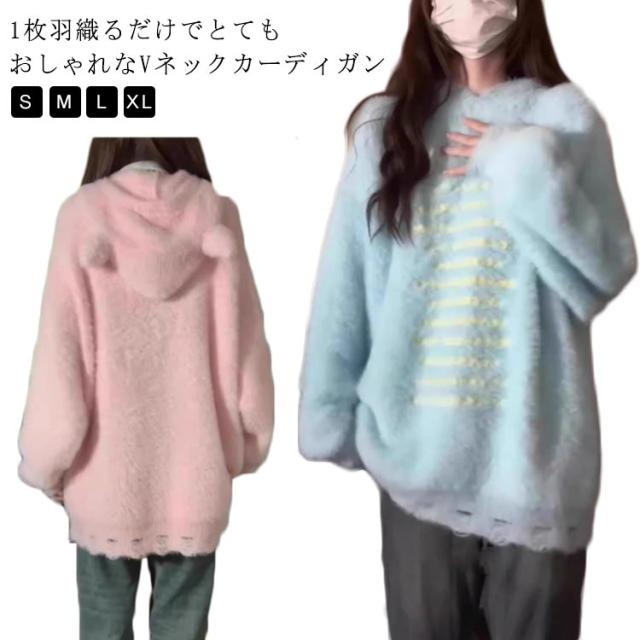 ふわふわ 秋冬 フード付き カーディガン ニットカーディガン 送料無料 韓国風 セーター 耳付き コート もこもこ 可愛い お洒落 ゆったり モヘア調 送料無料 防寒 シャギーニット ボリューム感 体型カバー 長袖 冬服 羽織 暖かい きれいめ S M L