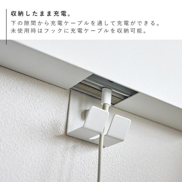 下部の隙間から充電ケーブルを通して収納したまま充電できます。