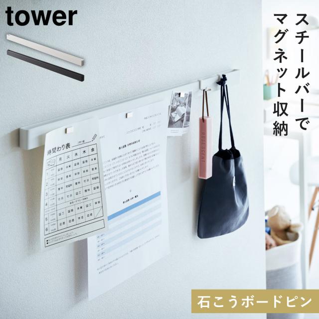 マグネットバー おしゃれ マグネット バー 壁 石膏ボード リビング 山崎実業 tower タワー 石こうボード壁対応マグネット用スチールバー タワー