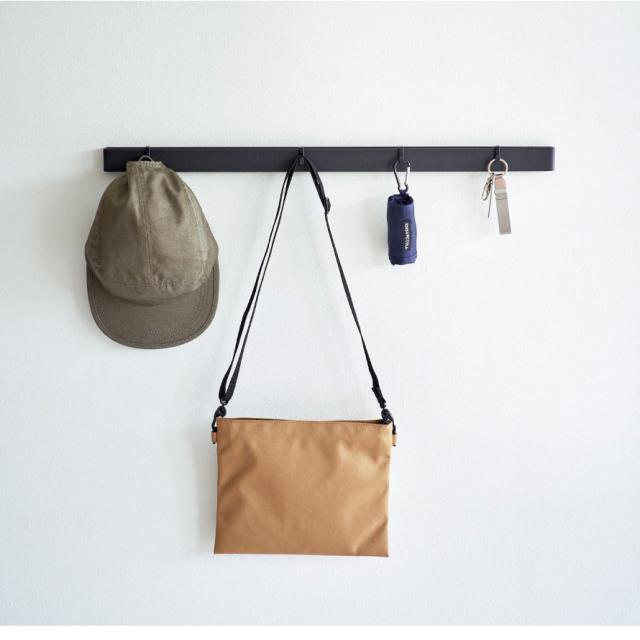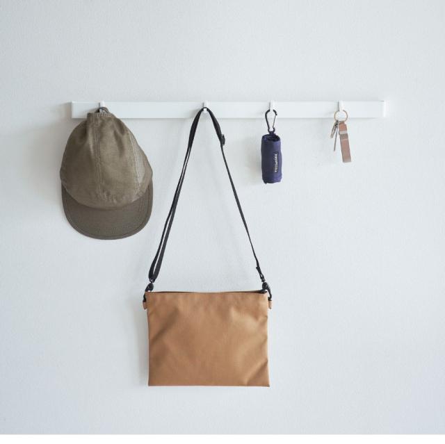 無駄のないシンプルなデザインなので、リビングの壁面にスマートに設置、インテリアの邪魔をしません。玄関に取り付ければお出かけの必需品をまとめて収納できます。