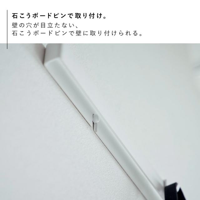 マグネットで壁に収納できるようになるスチールバー。壁の穴が目立ちにくい石こうボードピンで壁に取り付け可能。付属の木ネジでも取り付け可能です。