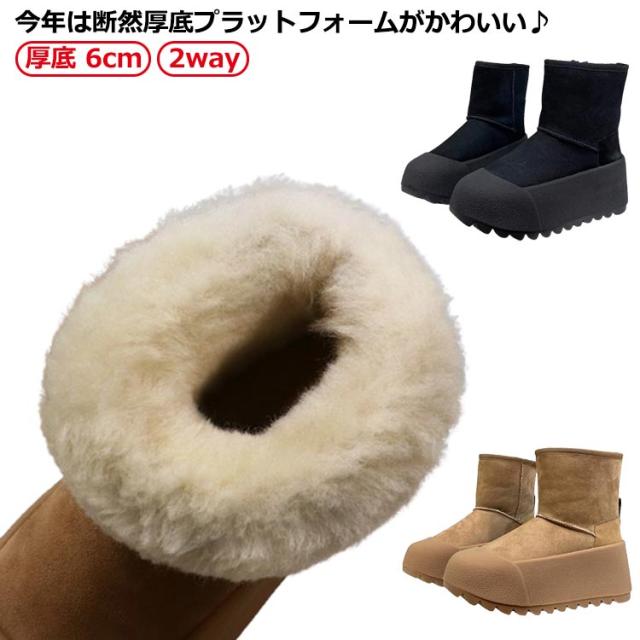 | 厚底 6cm 2way 今年は断然厚底プラットフォームがかわいい♪ リアルムートンを使用 ウィンターシーズンに大活躍のレディース用ムートンブーツ 厚底ソールでクッション性の高い、ソフトな履き心地が特徴。 コーデに合わせやすいショート丈。 シンプルなデザインなので、どんなスタイルにも合わせやすい万能アイテム! | |