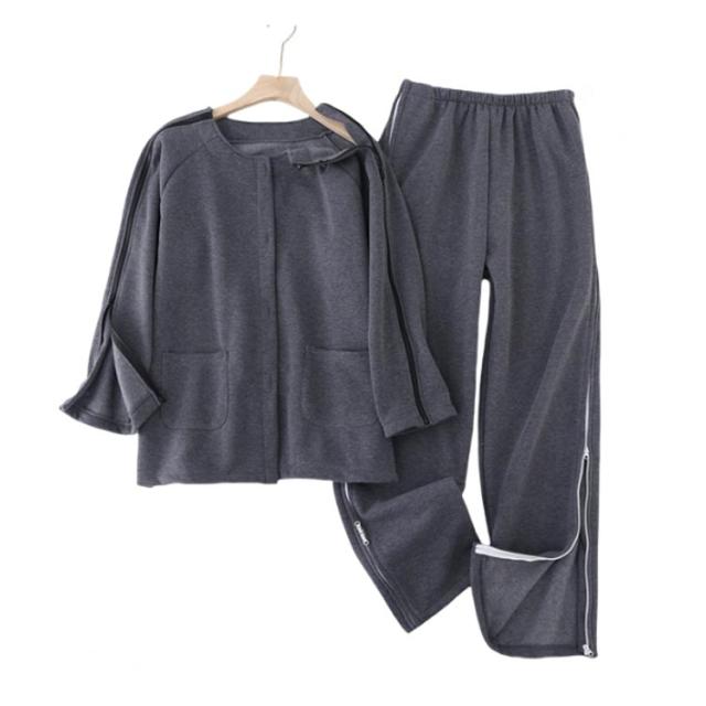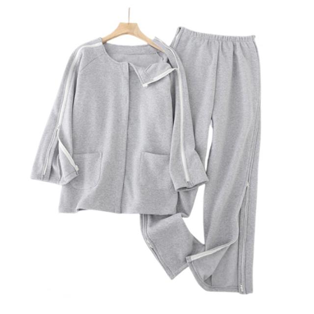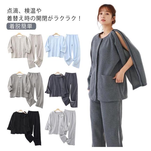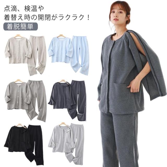 上下セット 綿 冬 2タイプが選べる パジャマセット パジャマ 長袖 マジックテープ介護 寝たきり 秋 トップス ボトムス 介護用パジャマ 長ズボン 着脱簡単 レディース メンズ 2点セット 通年用 全開フルオープン 介護 術後 入院 点滴中サポート 男性 介護用パジャマ