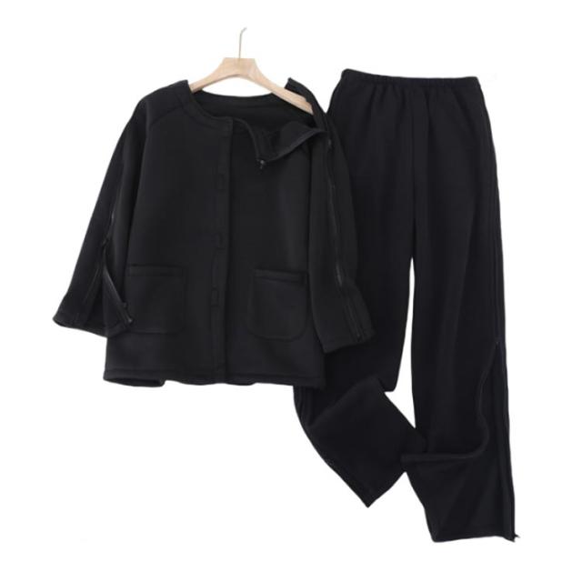 | 点滴、検温や着替え時の開閉がラクラク!身体の不自由な方や着替えが困難な方向けのフルオープンパジャマ・寝巻き。着せる人、着せられる人に親切な介護服が登場。独自片手でも着れる脱しやすい服です。 両袖に両サイドファスナー付、襟ボタンのしたはマジックテープで、着せる方や着せられる方にも優しいデザインです。独自でも片手で着脱が楽にできます。 全開にする場合では、ファスナーとマジックテープを全部取り外してください。 ズボンの両側にファスナーが仕様となり、ウエストの部分から裾口まで簡単に開きます。中央部分、腹部のみ、裾部分のみ…など、好きなところだけ開け、チューブなど膝を出すこともできます。 検診、介護時、着脱しやすく、もう診察や患部の塗り薬や張り薬を交換する際には上着を脱がせ、ズボンをおろす手間は心配いりません。 片麻痺(片マヒ)/半身まひ、リウマチ、手足の不自由な方や骨折回復期にも適用します。 | |