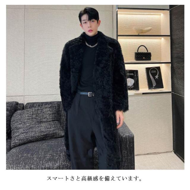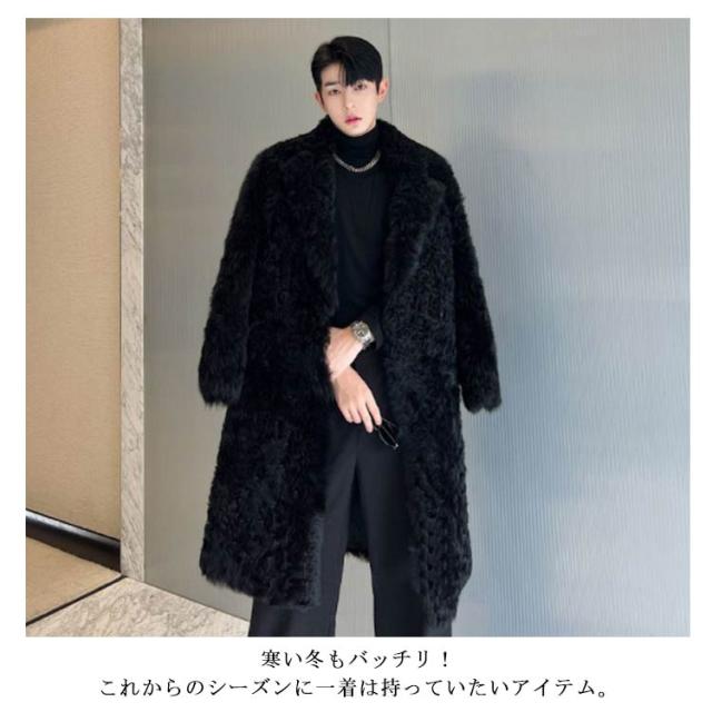 ファーコート メンズ 毛皮コート ミンク お洒落 アウター ロングコート ビジネスコート ジャケット 厚手 アウター チェスターコート 体型カバー 大きいサイズ ゆったり 秋冬 フェイクファー 防寒 高級感 モコモコ お兄系 柔らかい 上着 カジュアル 防風