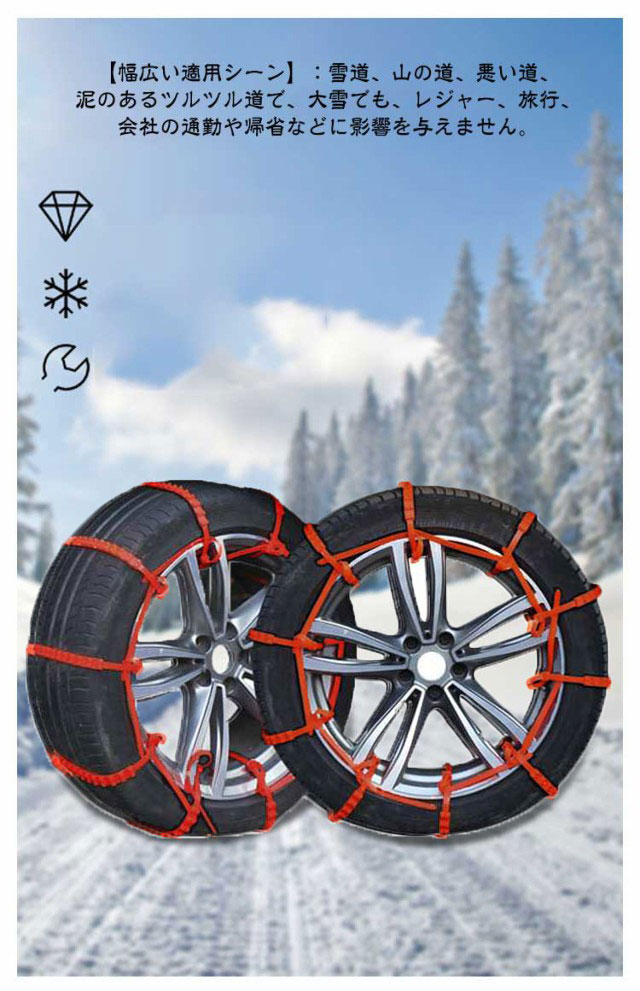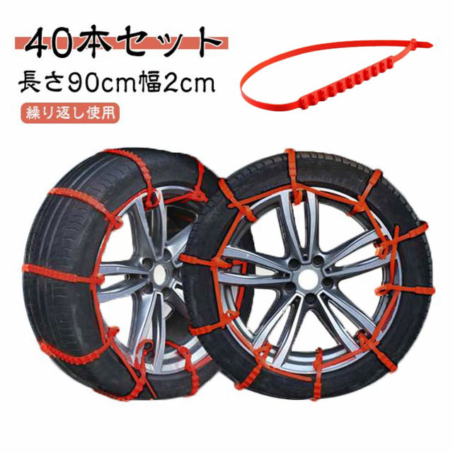 スノーチェーン タイヤチェーン 簡単 軽自動車 アイスバーン対策 滑り止めチェーン 40本セット タイヤチェーン 非金属 汎用 簡易型 ジャッキアップ不要 雪道 悪路対応 雪チェーン 鋸歯形 事故防止 簡単装着 車用 非金属 ホイールチェーン 軽自動車用 SUV用 凍結