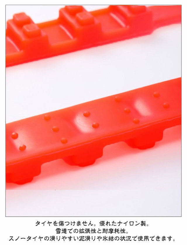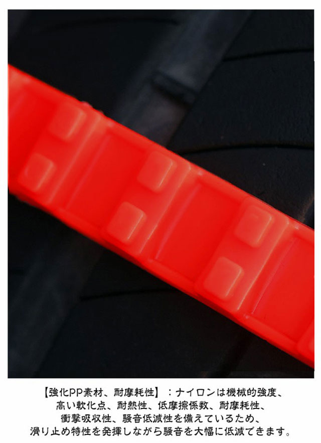 | サイズについての説明 | 軽自動車の場合、車輪1つずつ6-10個使用、対応タイヤ幅145-295mm、市販90%の軽自動車適用 サイズ:長さ90cm幅2cm ※実寸はメジャー採寸の為、若干の誤差が生じる場合があります。 |