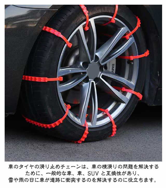 | 40本セット 長さ90cm幅2cm 繰り返し使用 【取付簡単】:車両移動不要・ジャッキアップ不要・ツールも必要ありません、女性でも簡単に取り付け可能。 【強化PP素材、耐摩耗性】:ナイロンは機械的強度、高い軟化点、耐熱性、低摩擦係数、耐摩耗性、衝撃吸収性、騒音低減性を備えているため、滑り止め特性を発揮しながら騒音を大幅に低減できます。タイヤを傷つけません。優れたナイロン製。雪道での拡張性と耐摩耗性。スノータイヤの滑りやすい泥滑りや氷結の状況で使用できます。 【繰り返し使用】耐久性に優れたナイロン製なので繰り返し使用しても折れにくいのが魅力です。結東バンド式だから取り付けが簡単です! 【幅広い適用シーン】:雪道、山の道、悪い道、泥のあるツルツル道で、大雪でも、レジャー、旅行、会社の通勤や帰省などに影響を与えません。車のタイヤの滑り止めチェーンは、車の横滑りの問題を解決するために、一般的な車、車、SUV と互換性があり、雪や雨の日に車が道路に衝突するのを解決するのに役立ちます。 | |
