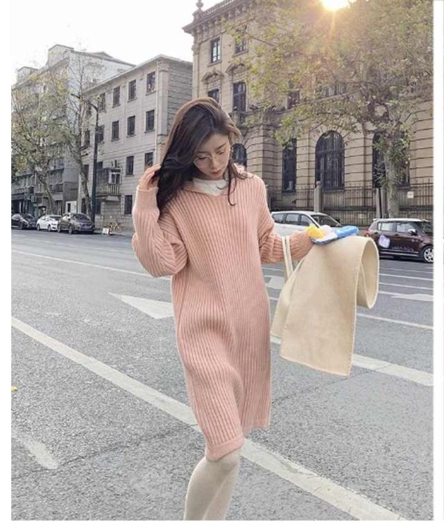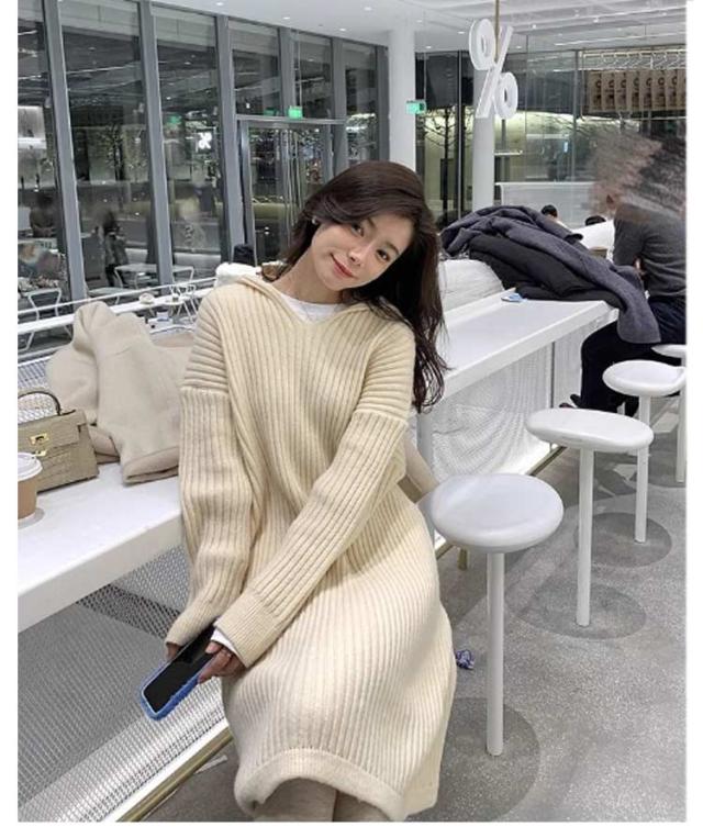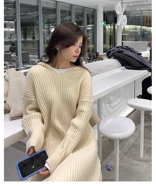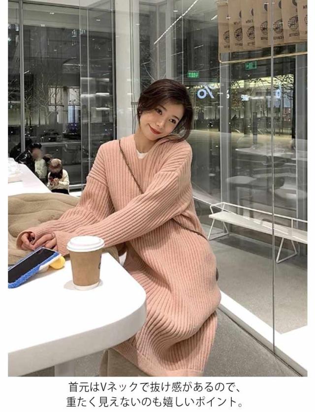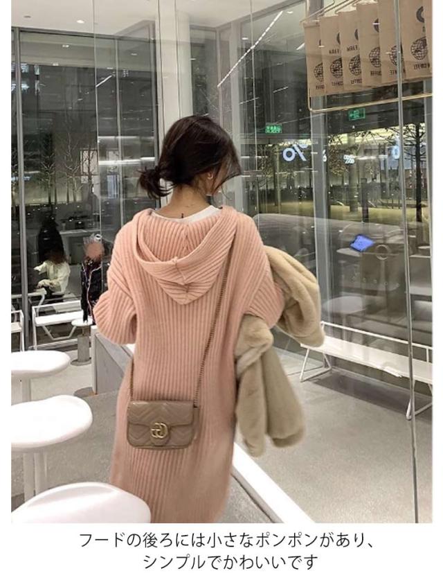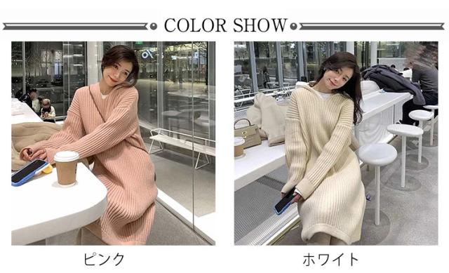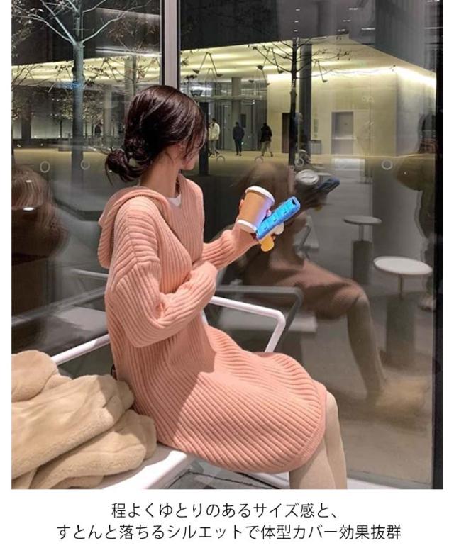 レディース ニットワンピース ワンピース 膝丈 春 ネック ロングワンピース ロング 長袖 秋冬 フード付き 大きいサイズ ゆったり プルオーバー 無地 ロング ニット