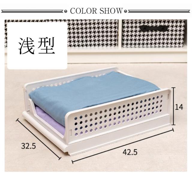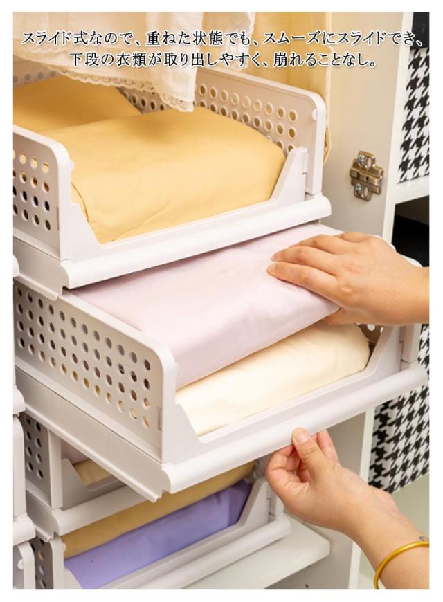 | 折りたため・スライド式衣類収納ケース。 オープンタイプで何が収納してあるか一目で見えるから探し物がすぐに見つかる。 スライド式なので、重ねた状態でも、スムーズにスライドでき、下段の衣類が取り出しやすく、崩れることなし。 高密度のポリプロピレンを採用して、強度も抜群。変形しにくく耐久性も持っています。 折りたたみ式で省スペース。衣類収納ボックスを使わない時に折りたたんで簡単に収納できるので、保管スペースが省ける収納ボックスである。着脱可能なフレームのため、引出の増減が可能です。 通気穴の設計で、湿気を簡単に放出させるので、服の乾燥性と快適性を保ちます。クローゼット収納だけでなく、キッチンやお風呂等のところにも適用します。 リビングや寝室などにも置きやすいシンプルデザイン。洗面所・キッチン・玄関など色々な場所で活躍できるちょうどいいサイズです。 | |