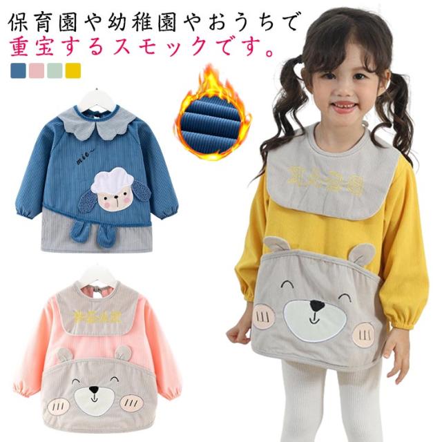 スモック キッズ 秋 長袖スモック コーデュロイ 裏地防水 エプロン 幼稚園 男の子 女の子 学生 習字 エプロン おしゃれ かわいい 入園 入学 春 子供用