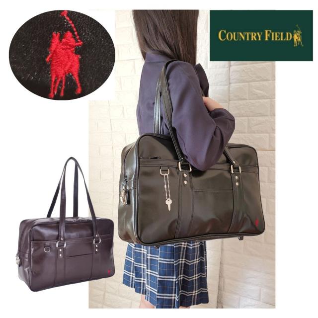 合皮スクールバック スクールバッグ A4 学生 通学 バッグ カントリーフィールド サブバッグ スクバ 通学カバン 軽量 自立 女子 中学生 女子高生 高校生 レディース 大きい 日本製 国産 学生鞄 入学祝