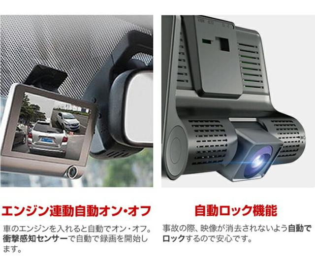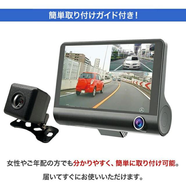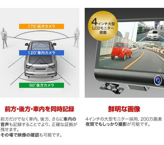 3画面同時記録ドライブレコーダー ドラレコ ドラレコ前後 ドライブレコーダー 前後 ドライブ レコーダー 前方後方